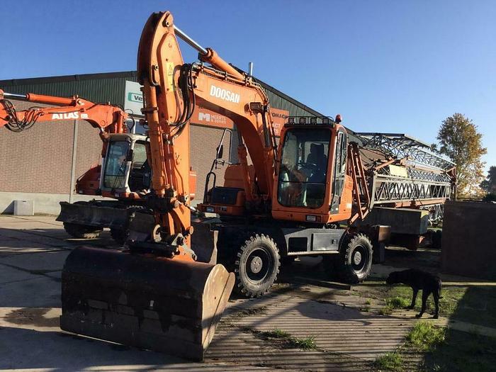 DOOSAN DX 160W - Excavator More info: With push blade and support legs Monoboom Trunk Hydraulic quick change Approx. 4000 hours