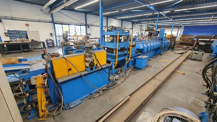Explore this used Tecnopromec Alfa C industrial metalworking machine, manufactured in 1997, located in The Netherlands. This profiling line boasts an absorption of 176 A, a total power of 95 kW, and operates on a power supply of 380/50 V/Hz.